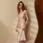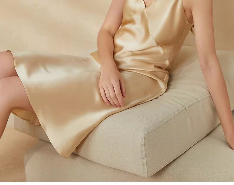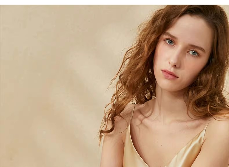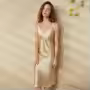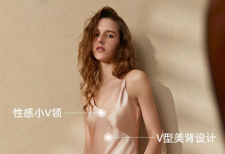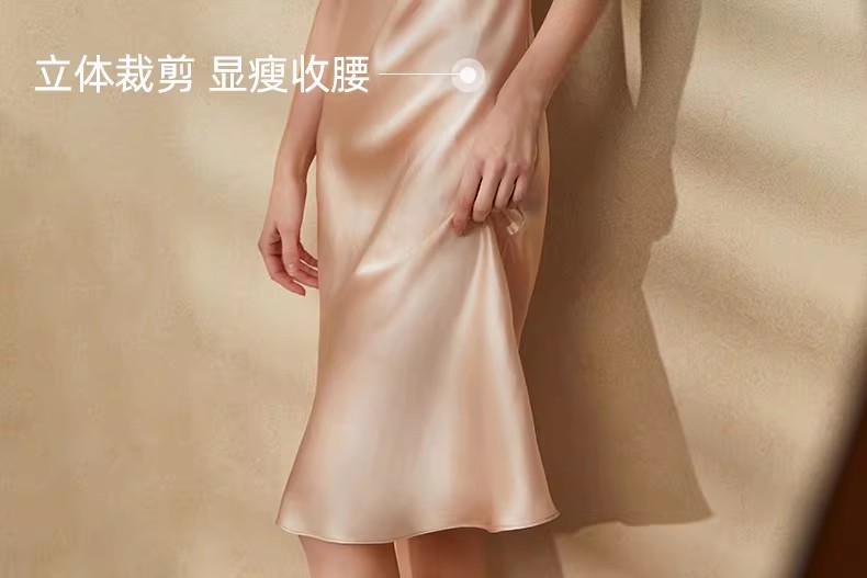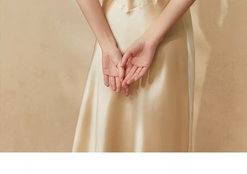 Long silk nightgown with suspender, home sleepwear for women
